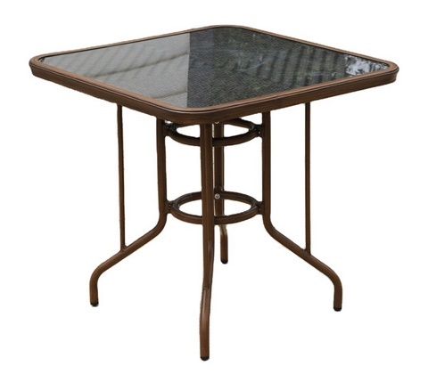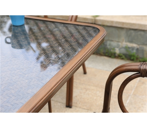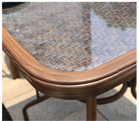 Квадратный алюминиевый стол с плетением из искусственного ротанга.