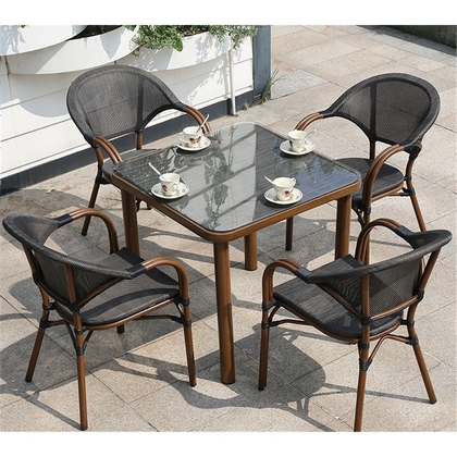 Стол квадратный из искусственного ротанга 80х80 Бамбук/Теслин (Bamboo/Teslin)