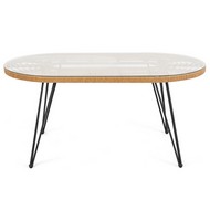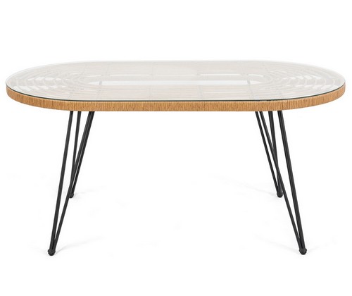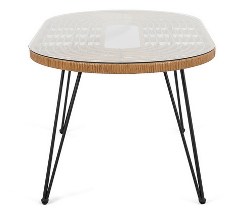Материал изделия: каркас - сталь (покрытие - краска порошковая полимерная), ротанг искусственный, столешница - стекло закаленное, не тонированное.