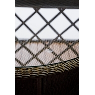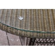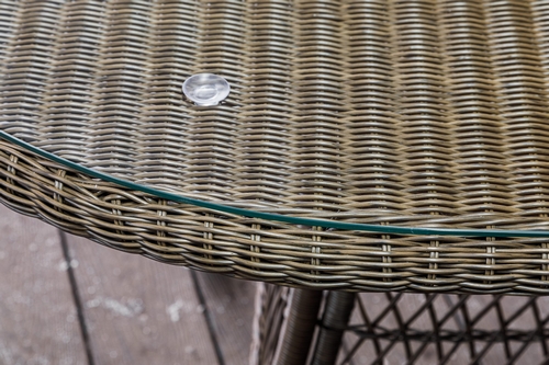 Материалы: Каркас - сталь, плетение - искусственный ротанг, столешница - закалённое стекло.