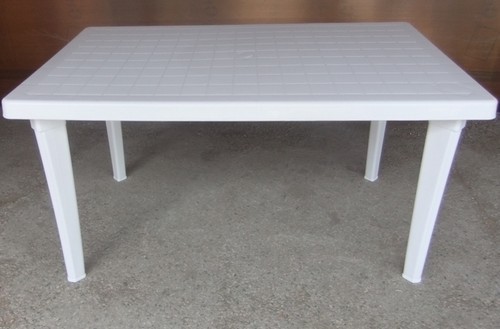 Стол пластиковый прямоугольный с геометрическим рисунком.