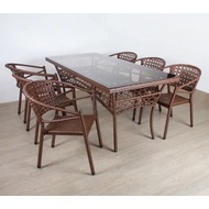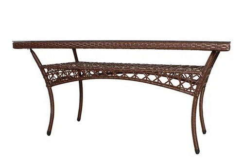 Материал: каркас - металл с порошковым покрытием, плетение - искусственный ротанг, столешница - закаленное стекло.
