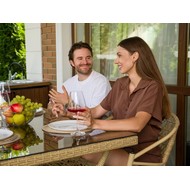Столешница из закаленного стекла отличается повышенной прочностью и устойчивостью к царапинам, сколам и температурным колебаниям, что делает ее идеальной для использования на открытом воздухе.