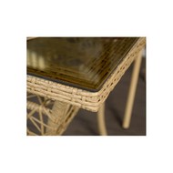 Материал изделия: каркас - металл с порошковым покрытием, плетение - искусственный ротанг, столешница - закаленное стекло.