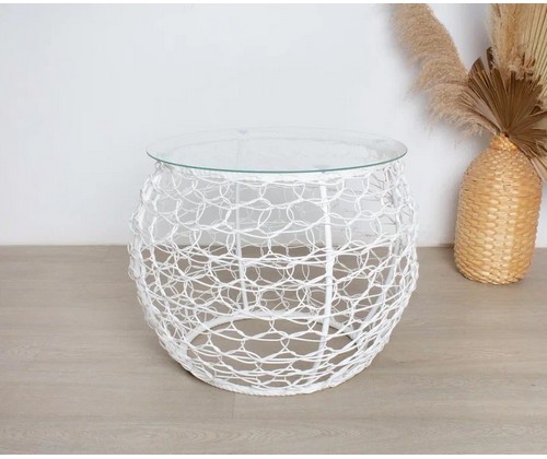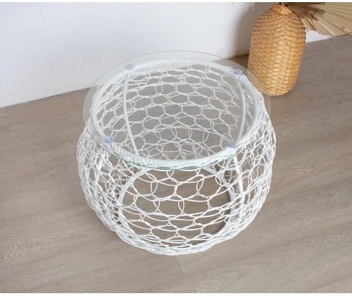 Материал изделия: каркас - металл с порошковым покрытием, плетение - искусственный ротанг, столешница - закаленное стекло.