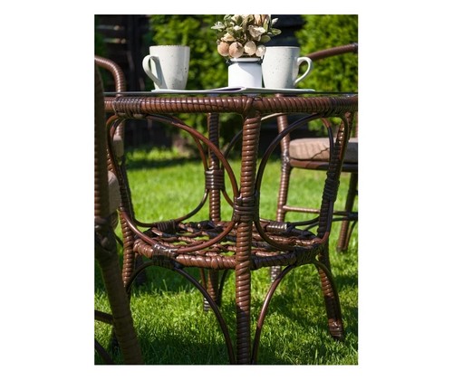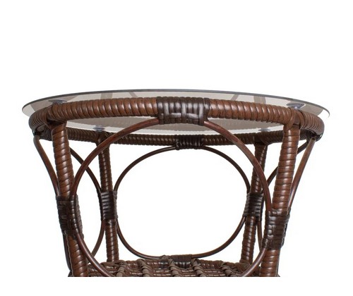 Материал изделия: каркас - металл с порошковым покрытием, плетение - искусственный ротанг, столешница - закаленное стекло.