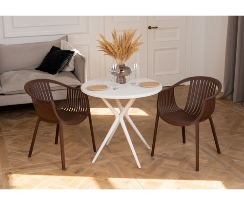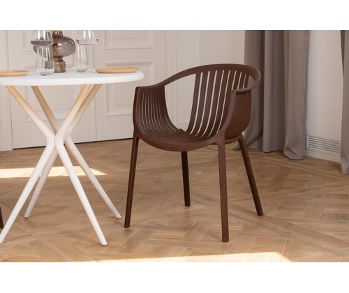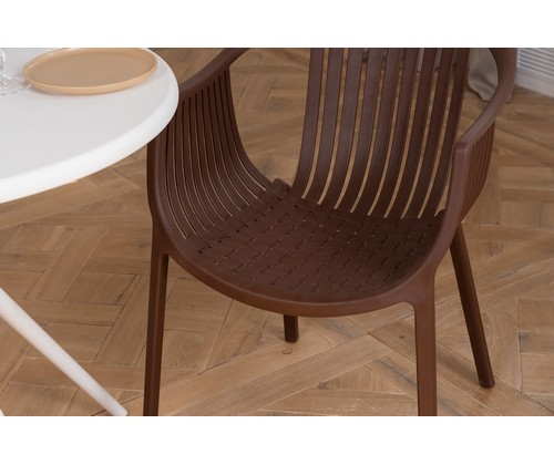 Стул пластиковый Эскалейт коричневый подойдет для оснащения открытых беседок, террас, уличных кафе.