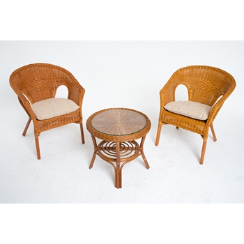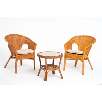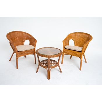 Террасный комплект: стол и 2 кресла 02-08 (натуральный ротанг, коньячный цвет)