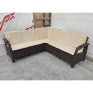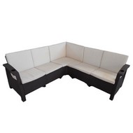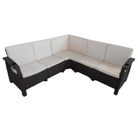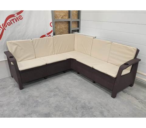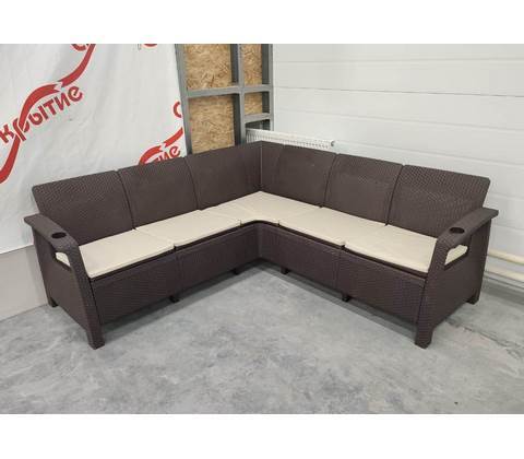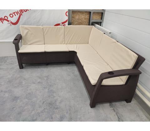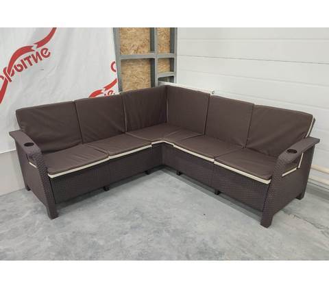 Угловой диван под иск.ротанг Yalta Corner Set Chocolate Premium с подушками на спинку