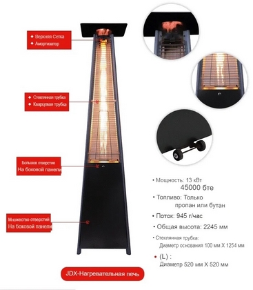 Особенности: Уличный газовый инфракрасный обогреватель "Пирамида" станет отличным решением для организации тёплой зоны на дачном участке в холодное время года, а так же в доме.