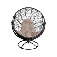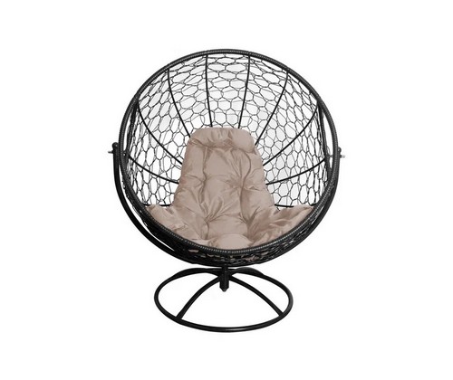 Вращающееся кресло с ротангом (черное с бежевой подушкой)