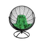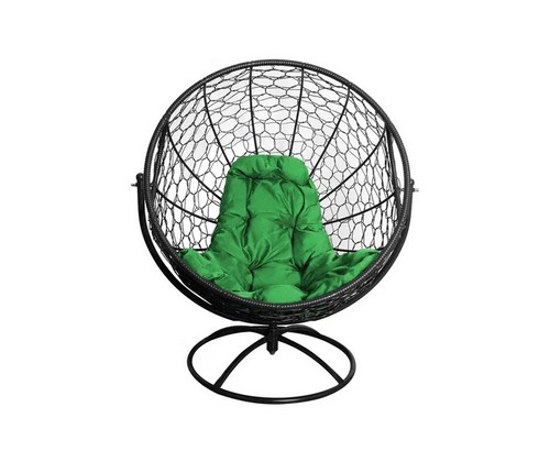 Вращающееся кресло с ротангом (черное с зеленой подушкой)