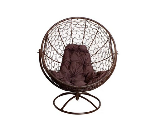 Вращающееся кресло с ротангом (коричневое с коричневой подушкой)