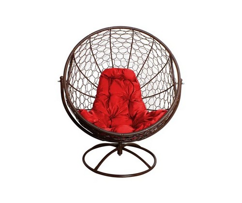 Вращающееся кресло с ротангом (коричневое с красной подушкой)