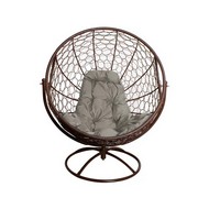 Вращающееся кресло с ротангом (коричневое с серой подушкой)