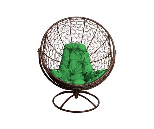 Вращающееся кресло с ротангом (коричневое с зеленой подушкой)